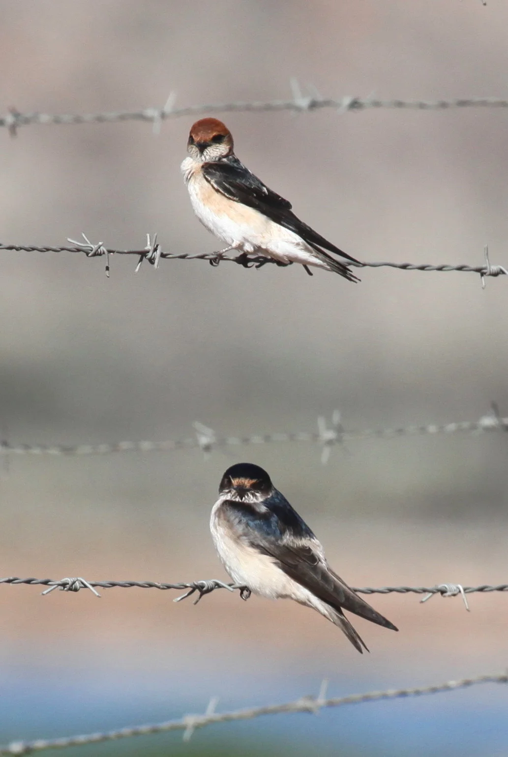 These two birds giving you their best “over-the-shoulder-smoulder”, are two of the trickier species to separate while birding around Alice Springs. On top is the dainty Fairy Martin, and below, the closely related and slightly larger Tree Martin. In this picture the difference between the two is perhaps obvious, but when they are whizzing past at high speed it may be tricky to pick the glossy blue crown of the Tree Martin from the rufous crown of the Fairy Martin.
